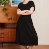 This elegant wrap dress features a flattering V-neck and delicate ric rac trim, enhancing its refined silhouette. Designed with raglan sleeves and a slightly flared, knee-length cut, it offers a comfortable regular fit. Crafted from stretch viscose, it ensures both softness and ease of movement, making it a sophisticated choice for any occasion.