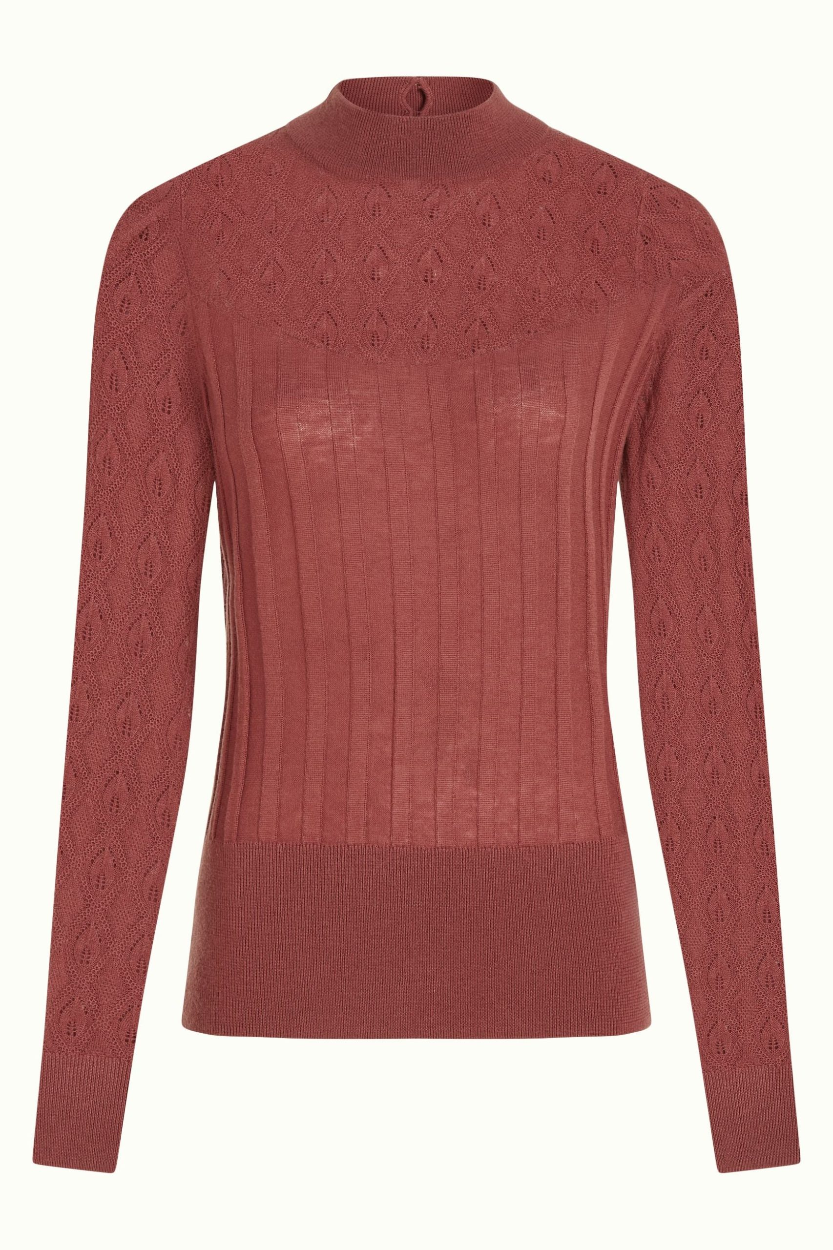 - Openwork motif on the shoulder yoke and sleeves