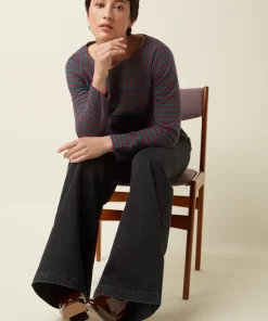Our Boatneck Top showcases a nautical vibe with jersey stripes and is available in two color combinations.