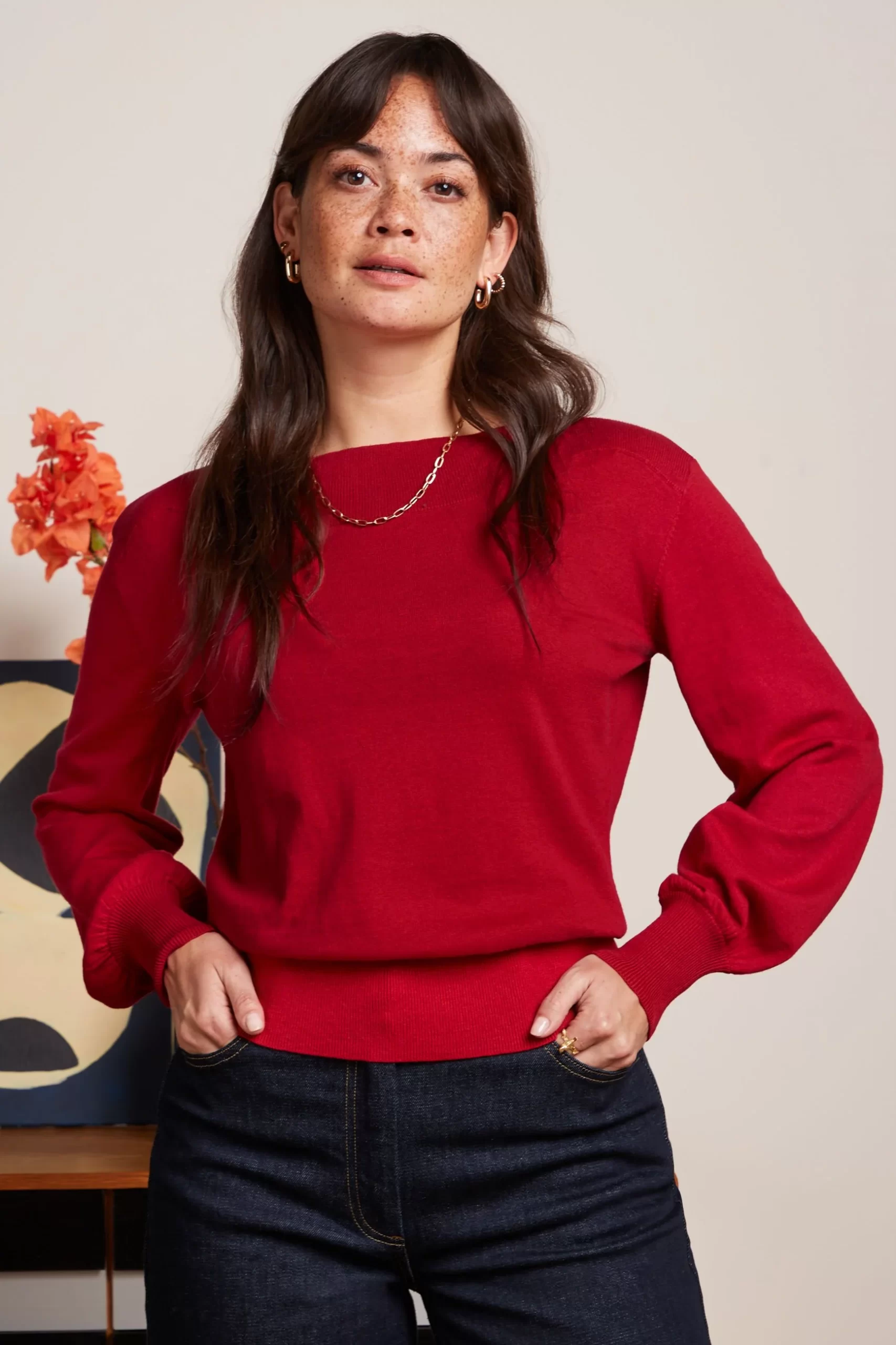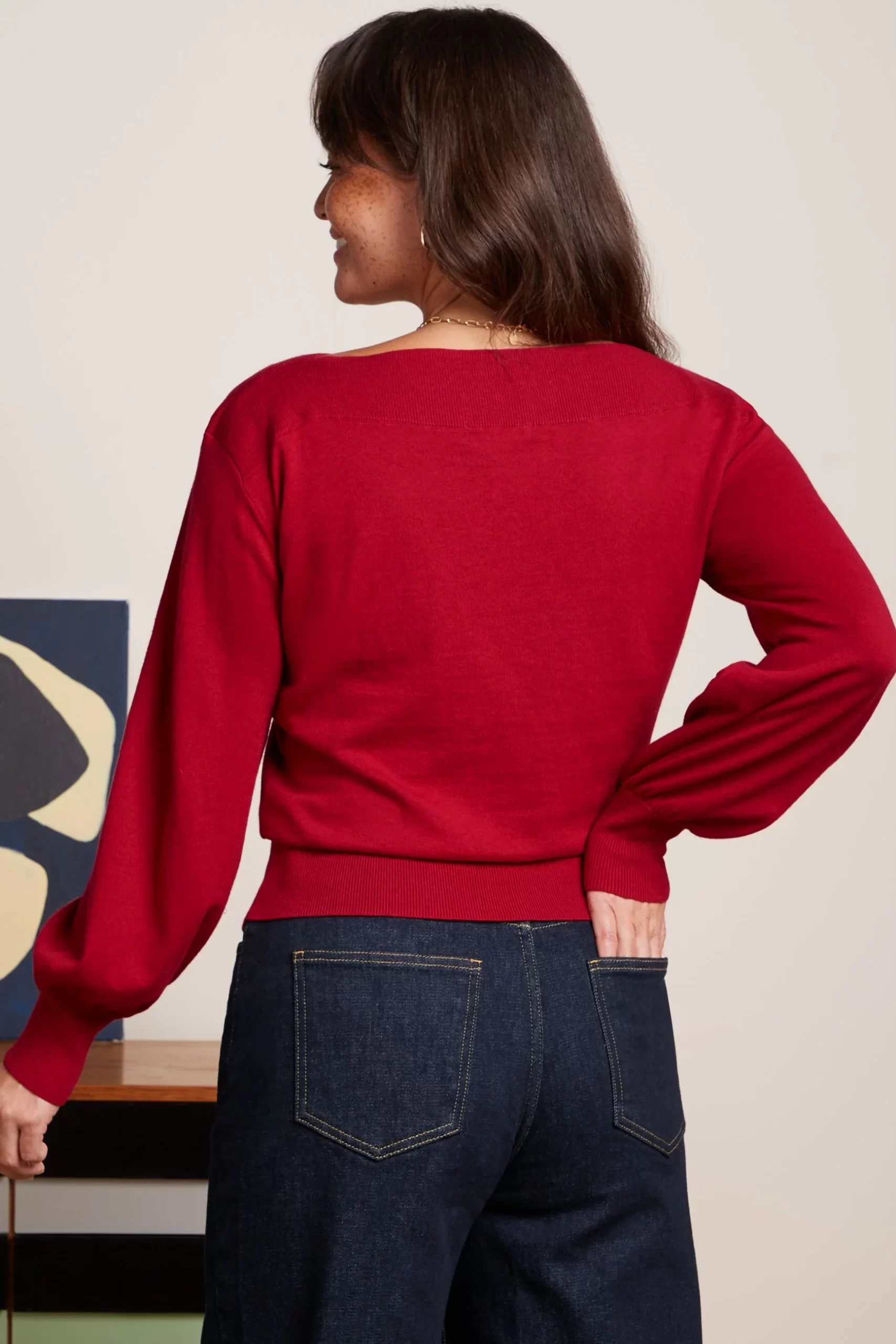 - Top with wide boat neck