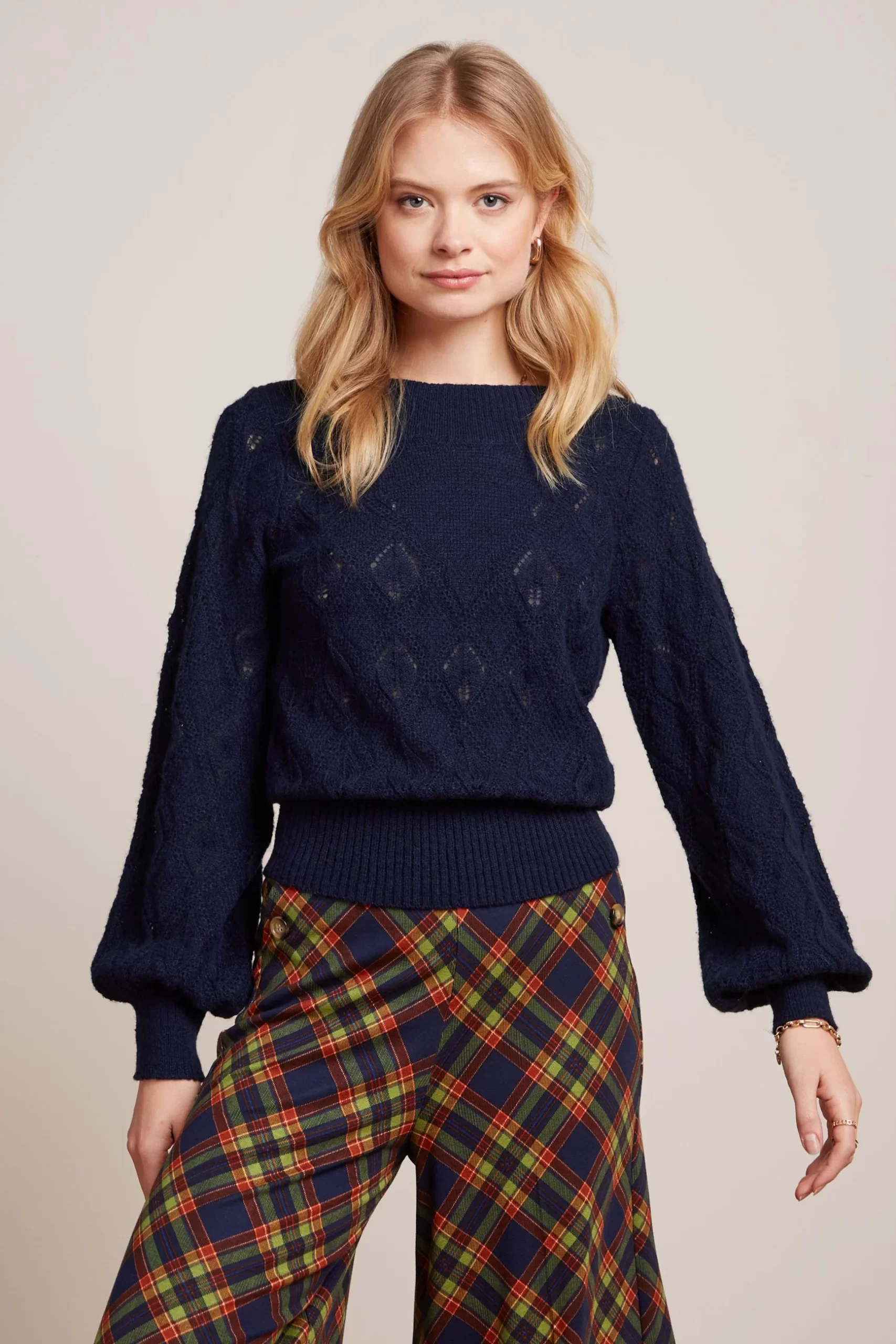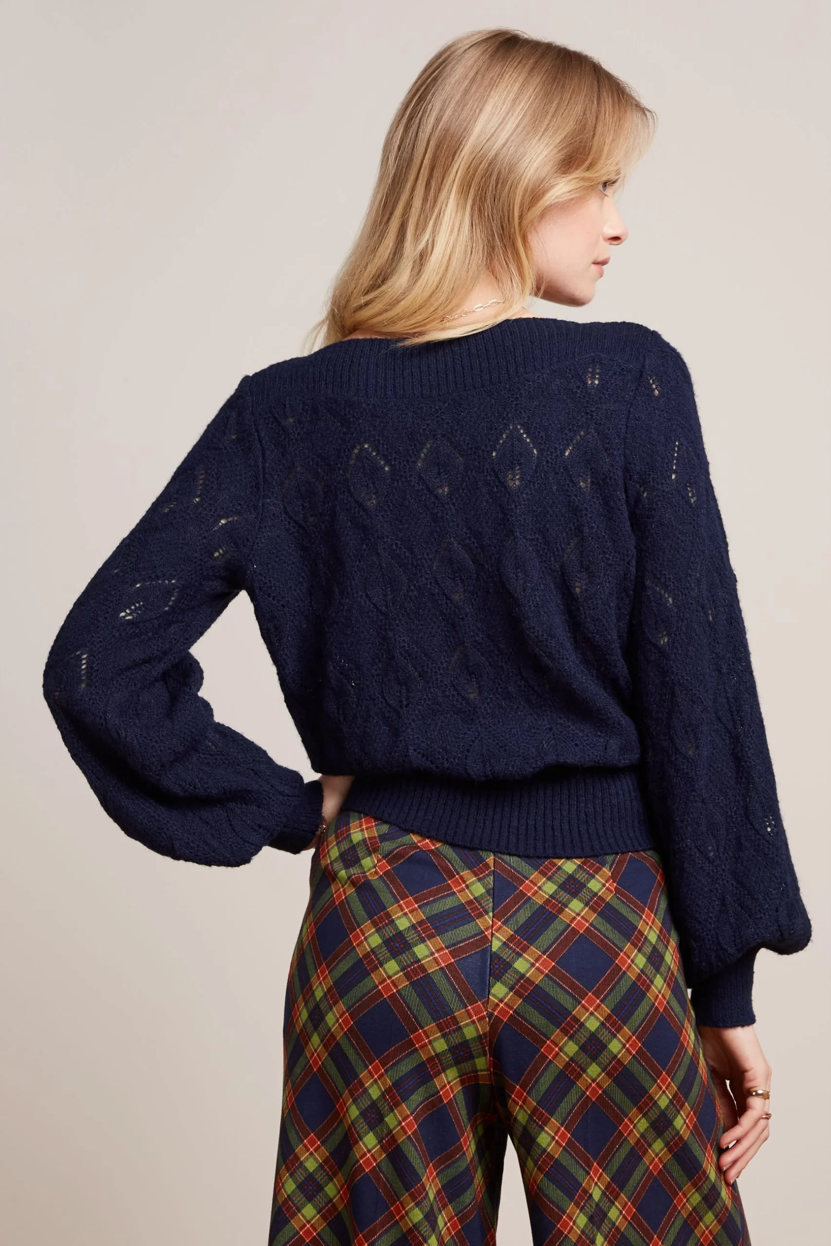 - Long balloon sleeves with cuffs