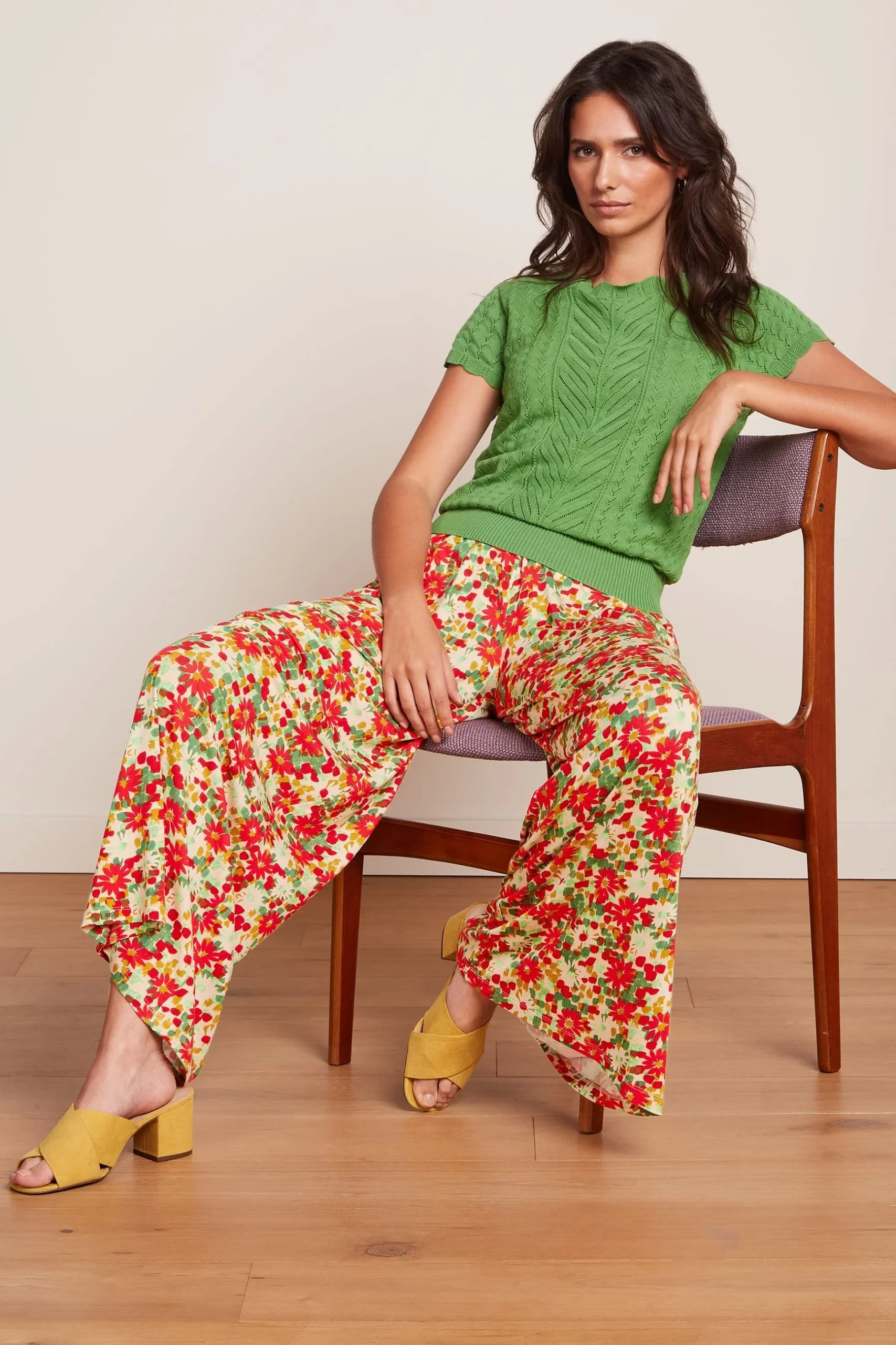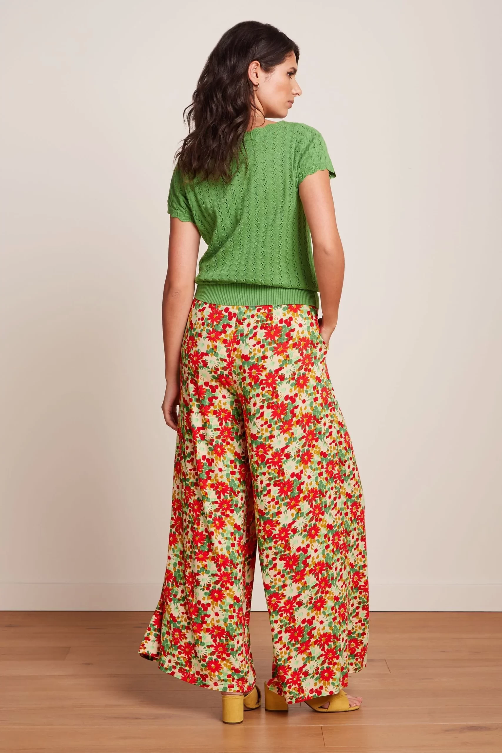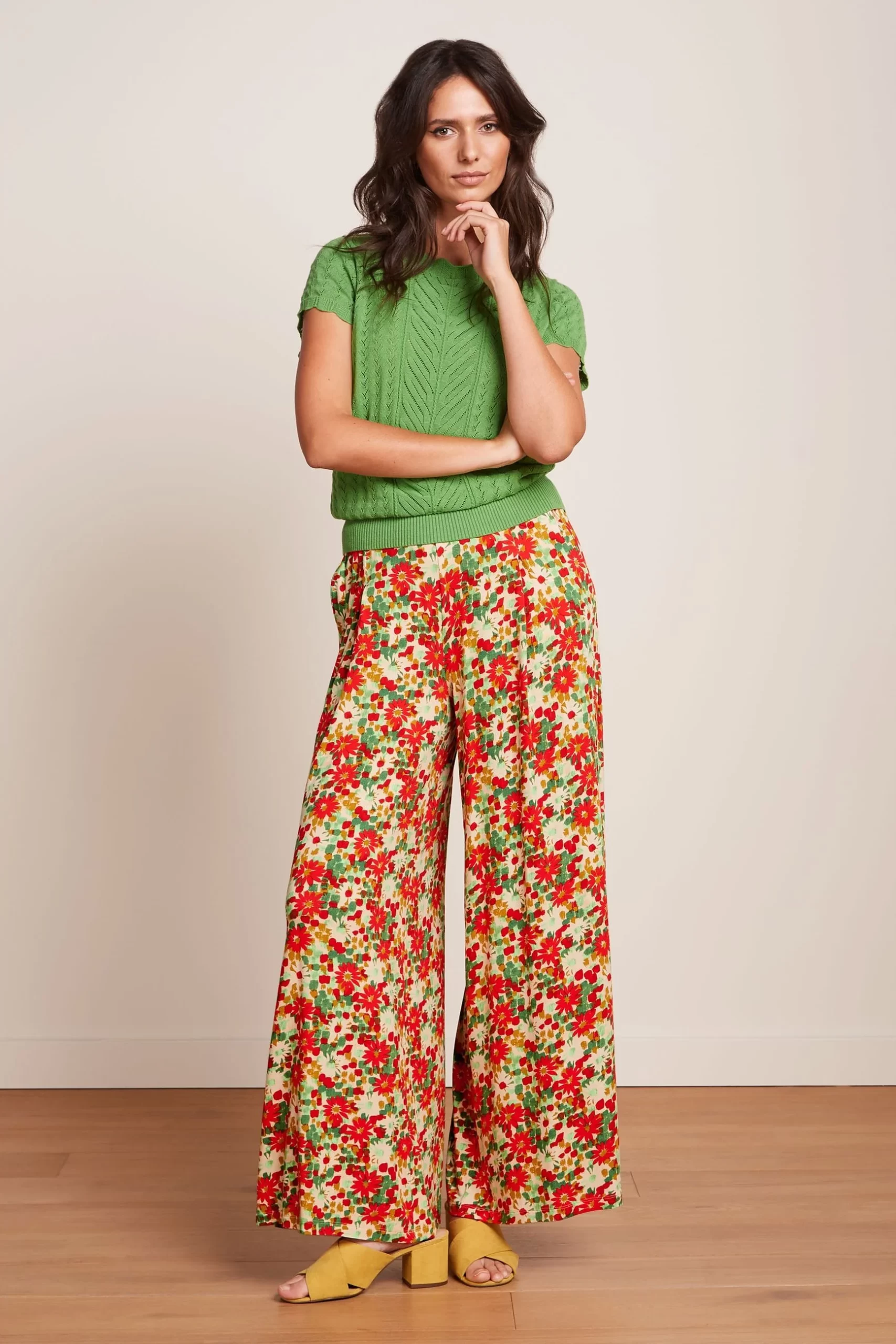 Stylish wide leg pants with flattering front pleats and practical side pockets.