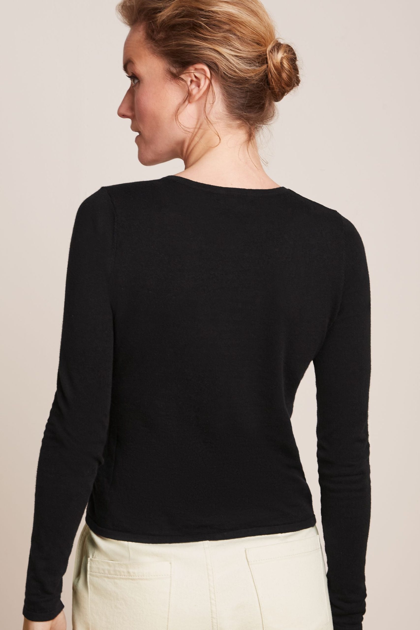 Crafted from stretch cotton knit, this long-sleeve piece offers a plain design with a round neckline and a regular fit. It features a button closure, ensuring both comfort and practicality.