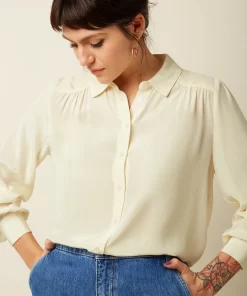 The Carina Blouse Sista combines a classic collar and button closure with long sleeves featuring cuffs and delicate pleats from the shoulder yoke and sleeves. Made from soft woven viscose, it offers a refined, elegant look with comfortable wear.