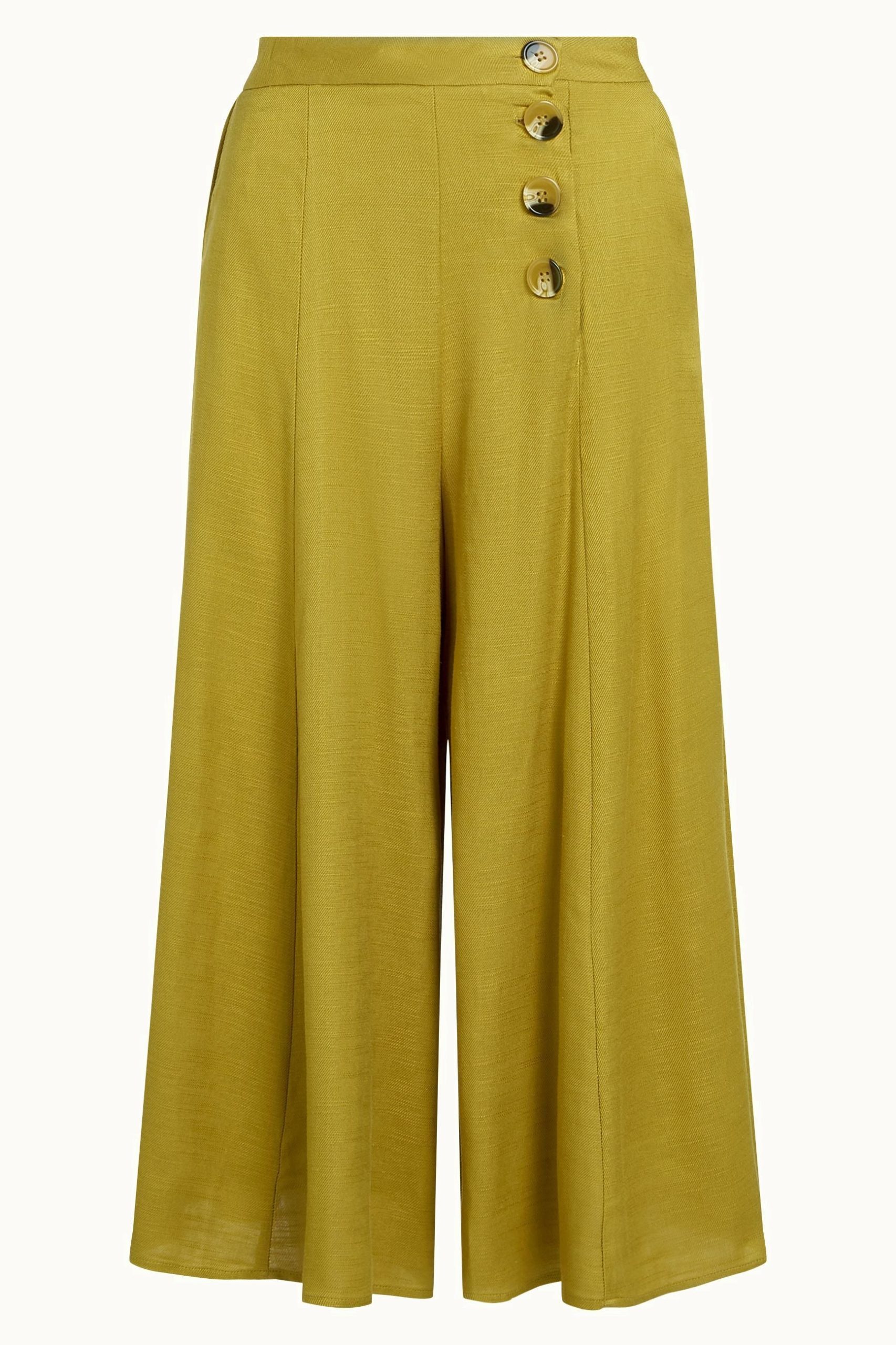 Step back in time with our Dallas Culotte, crafted from a blend of viscose and linen, featuring a retro front button opening and a flowy silhouette, for all day long comfort.