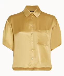 Oversized and cropped blouse featuring side slits for effortless movement.