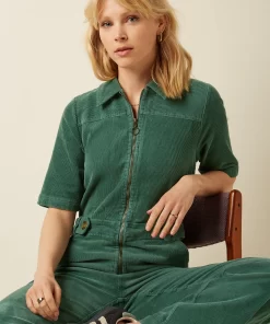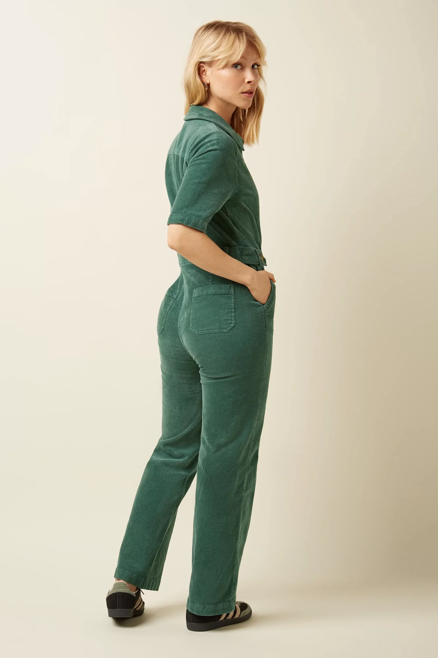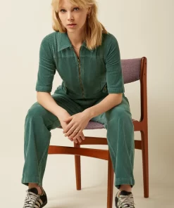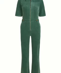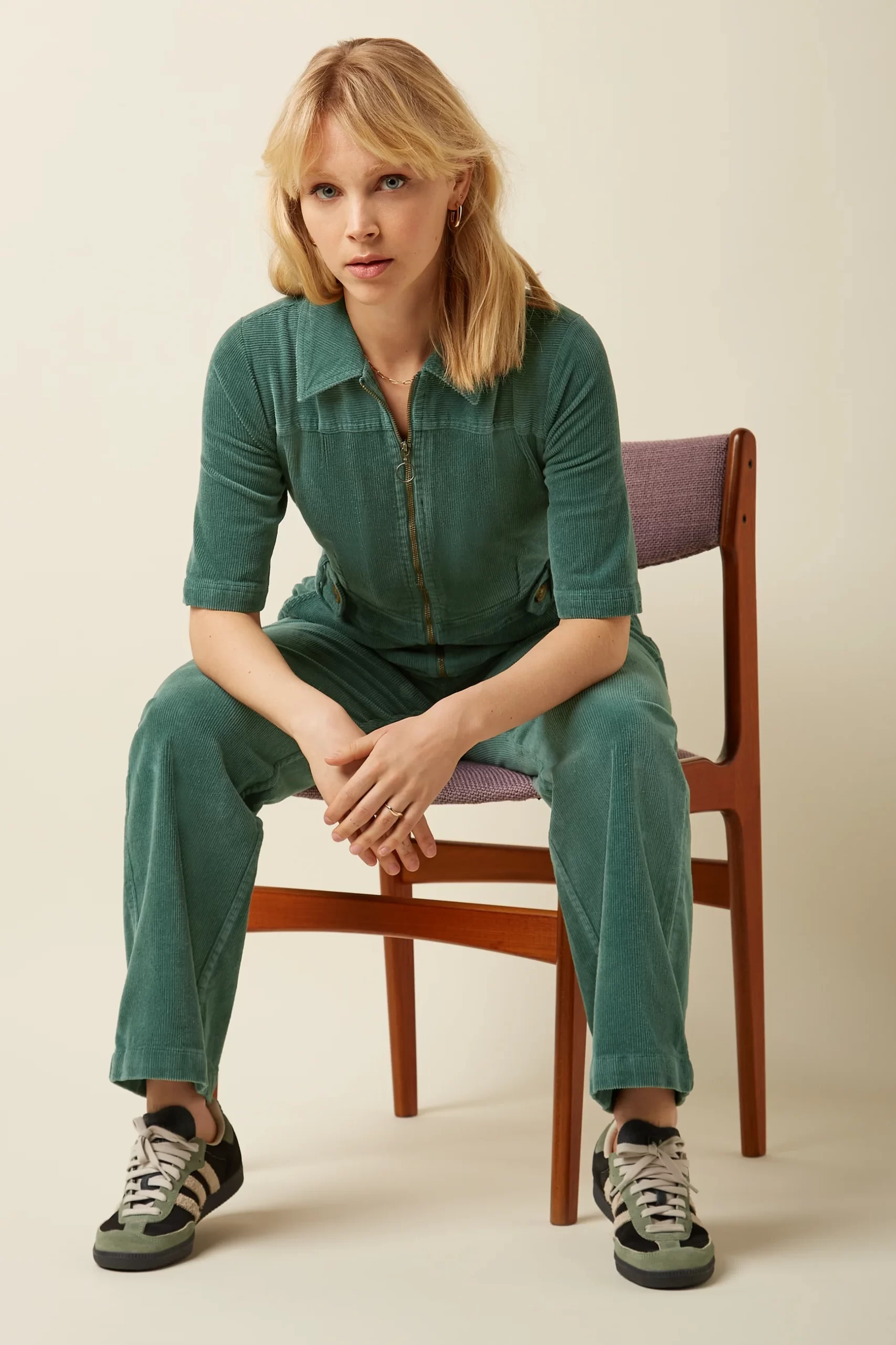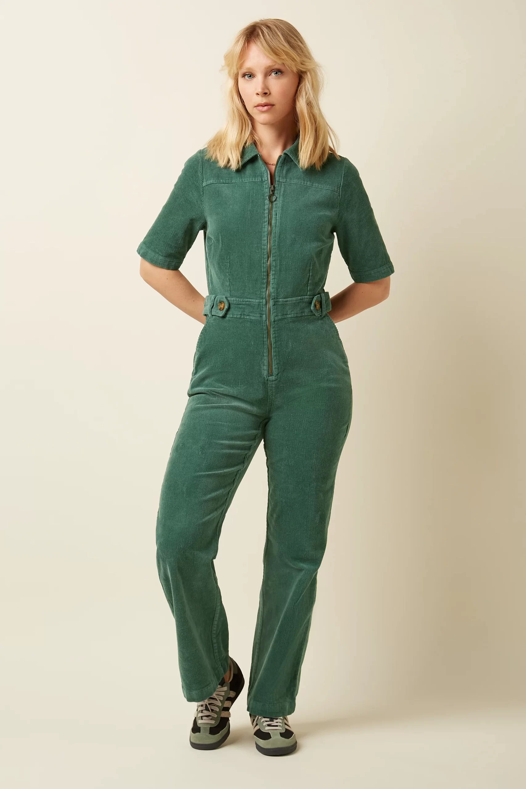 The Garbo Zip Jumpsuit Corduroy features a classic collar and short sleeves for timeless style. With slanted pockets and a fixed waistband, it offers a flattering fit. Made from corduroy with comfort stretch, its slightly flared legs and zipper closure ensure both comfort and ease throughout the day.