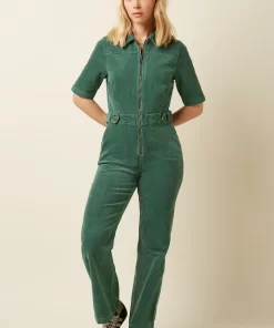 The Garbo Zip Jumpsuit Corduroy features a classic collar and short sleeves for timeless style. With slanted pockets and a fixed waistband, it offers a flattering fit. Made from corduroy with comfort stretch, its slightly flared legs and zipper closure ensure both comfort and ease throughout the day.