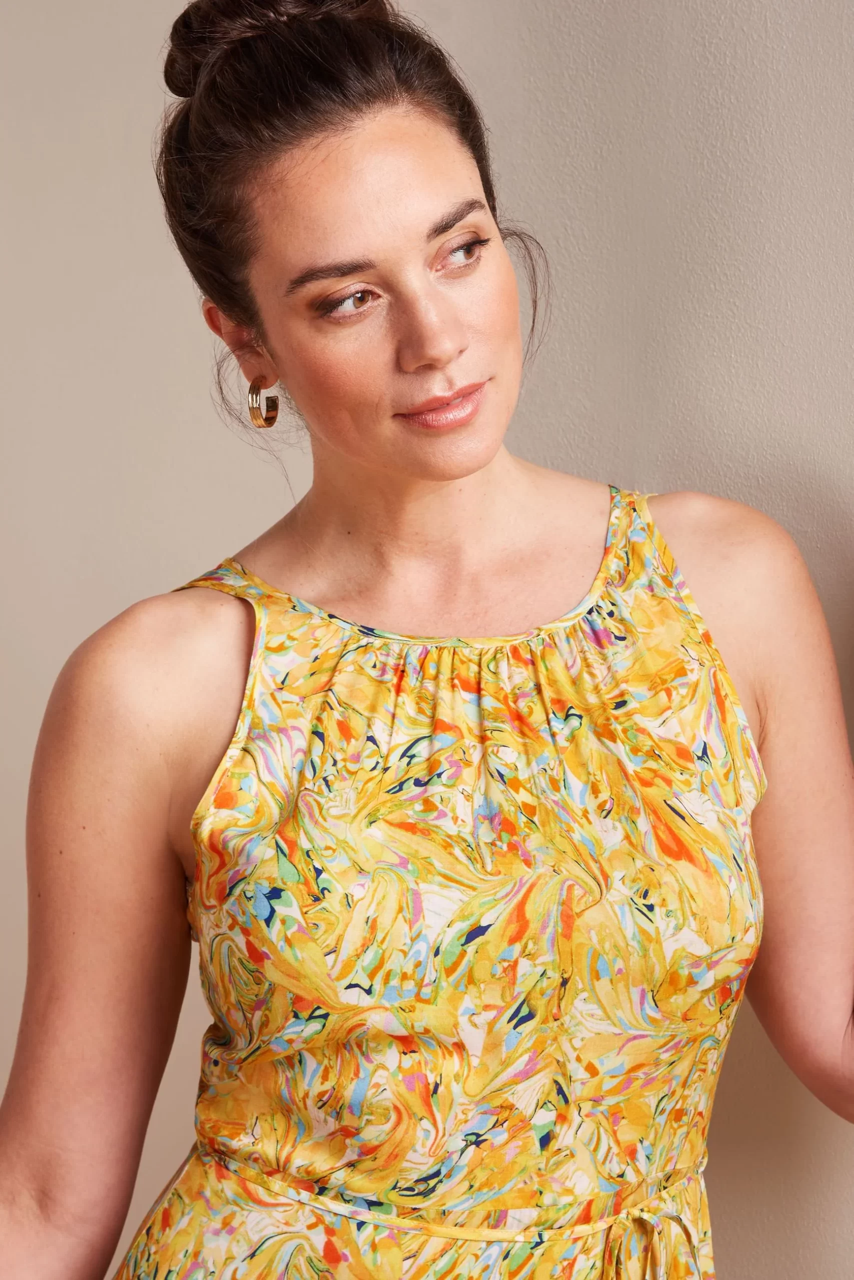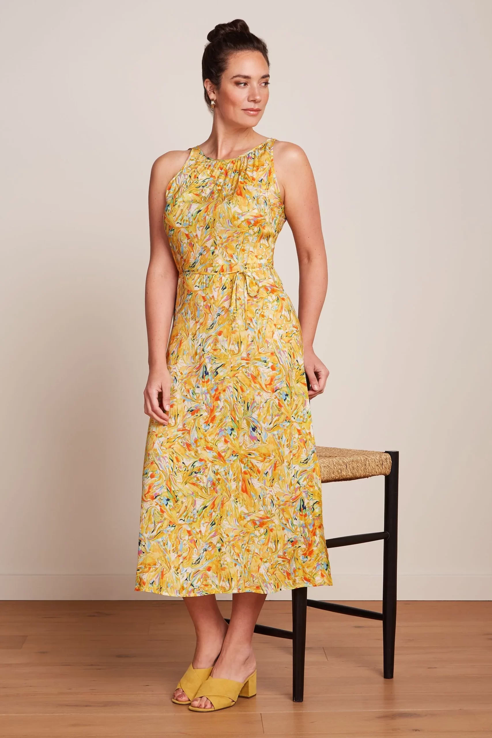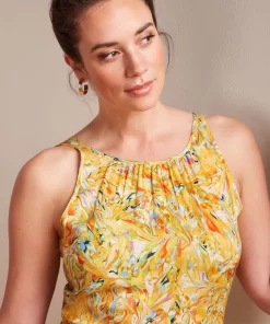- Pleats around the neckline