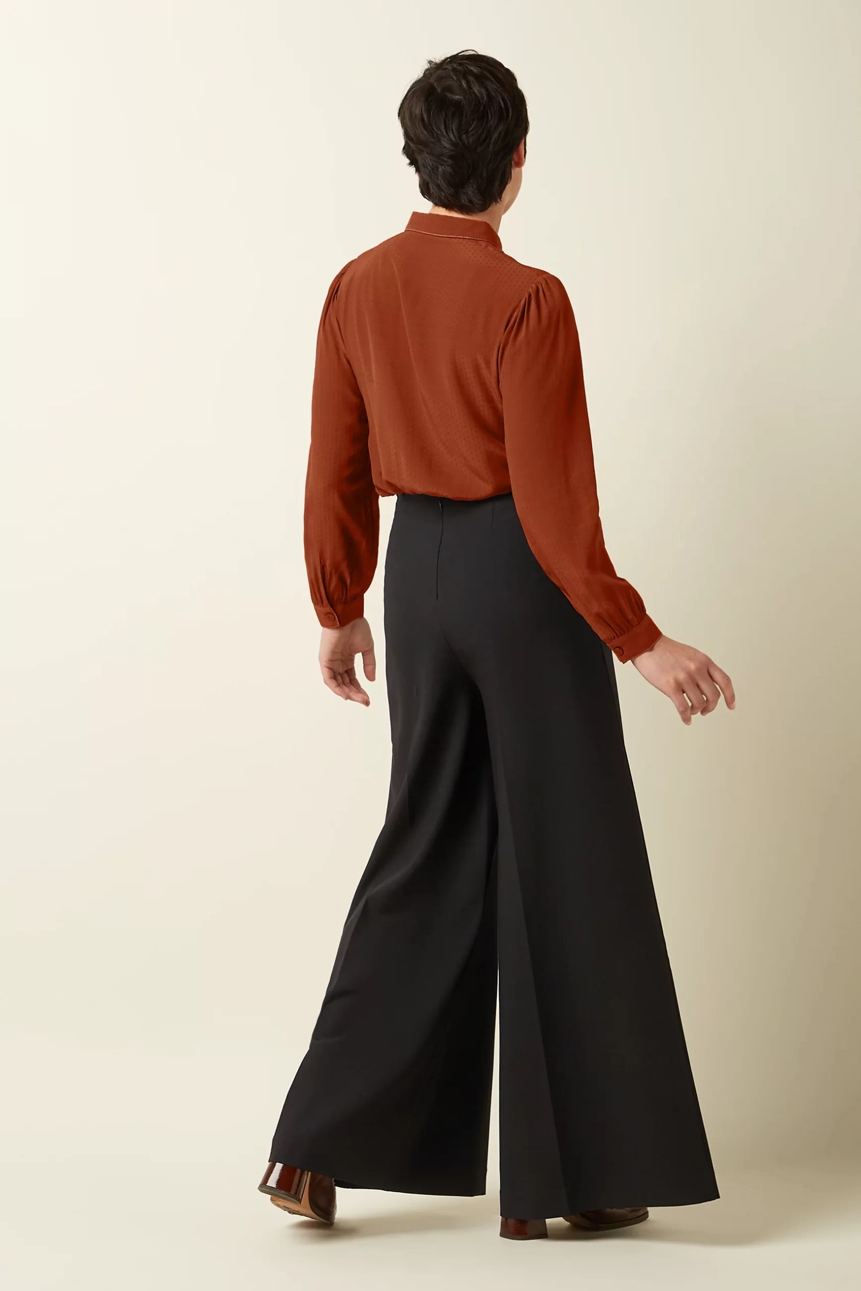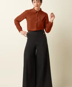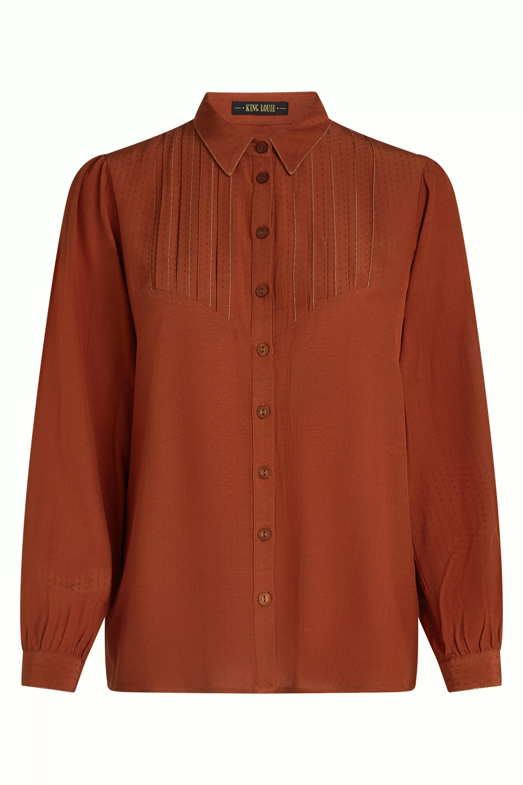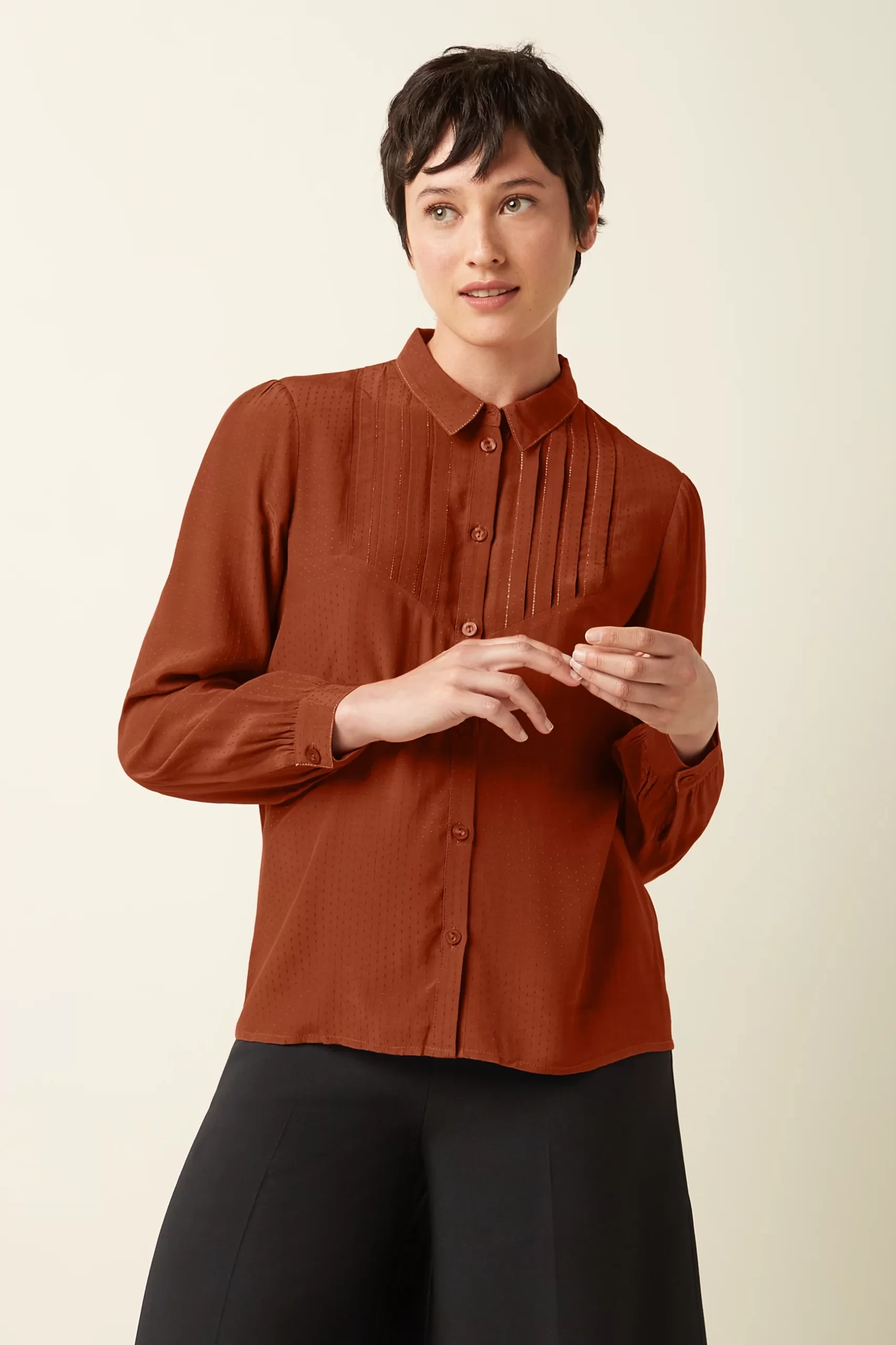 Romantic charm blends with effortless elegance in our Karen Blouse, featuring front pleats topstitched in gold and puffed sleeves. It is available in two color combinations for Sista.