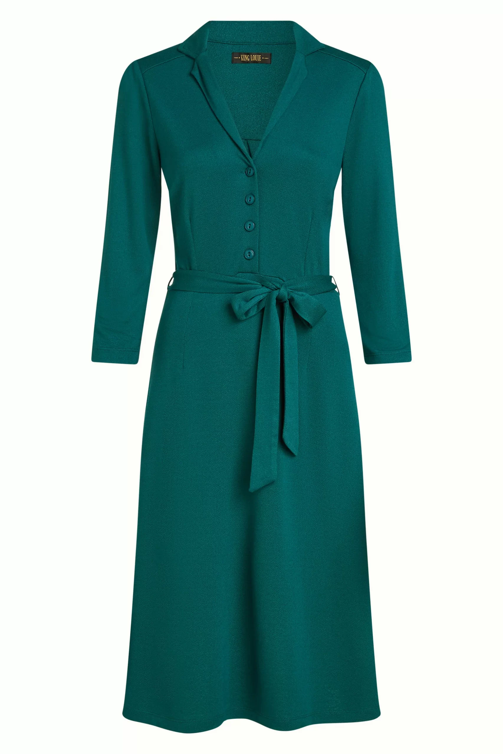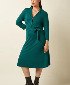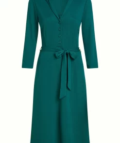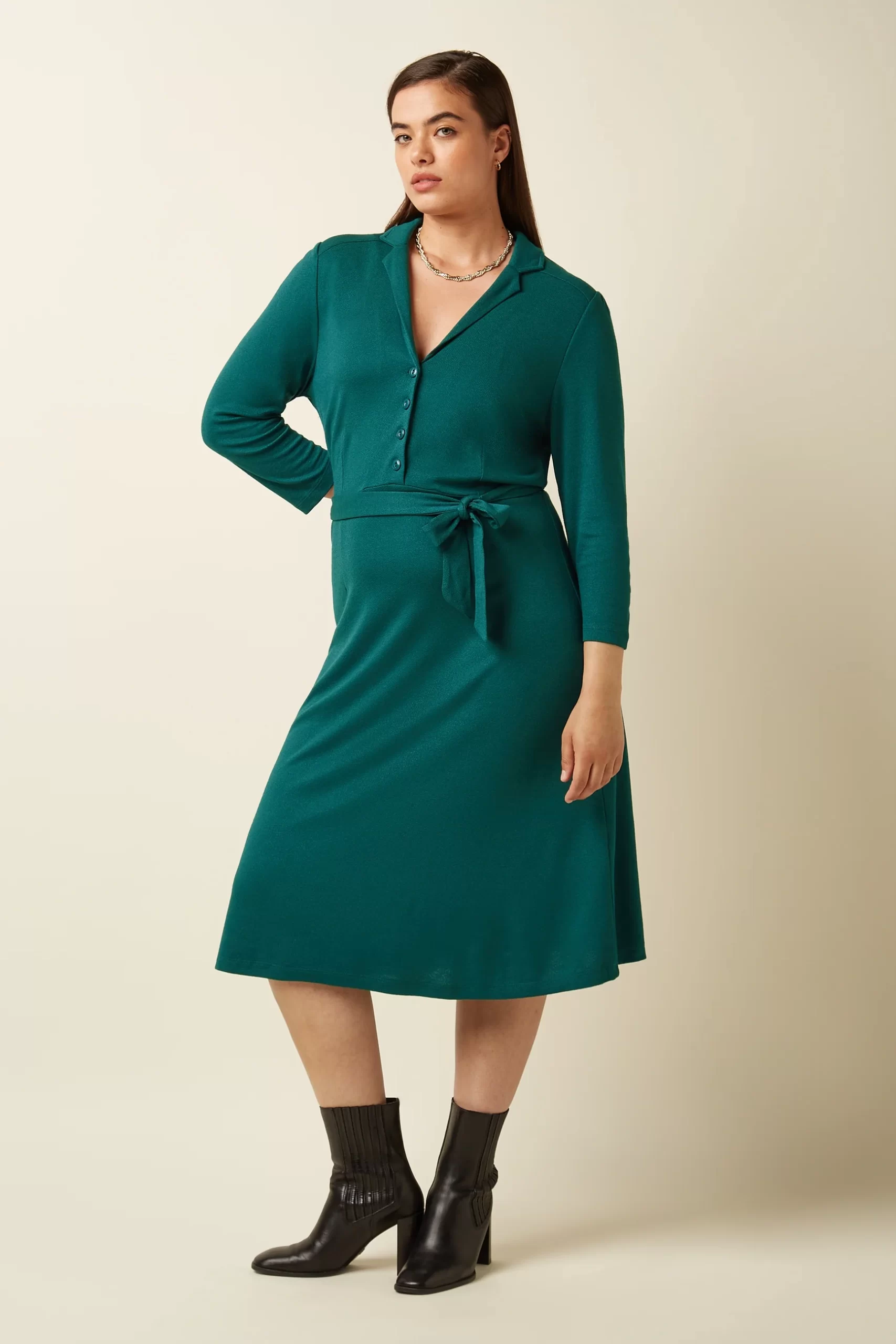 The Lola Dress Milano Crepe combines a sophisticated lapel collar and long sleeves with a flattering tie belt and flared midi length. Made from stretch viscose, it offers comfort and elegance, finished with a classic button closure for timeless style.