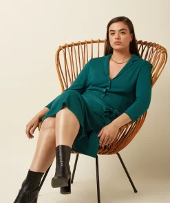 The Lola Dress Milano Crepe combines a sophisticated lapel collar and long sleeves with a flattering tie belt and flared midi length. Made from stretch viscose, it offers comfort and elegance, finished with a classic button closure for timeless style.