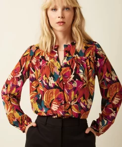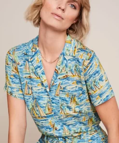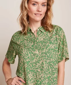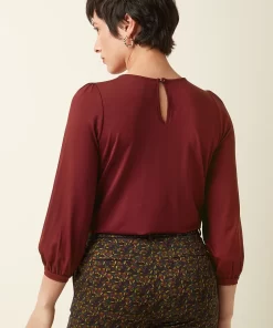 The Luella Top Viscose Light offers delicate yoke pleats, 3/4 cuffed sleeves, and a round neckline with keyhole button, crafted from stretchy viscose jersey for comfort and style.