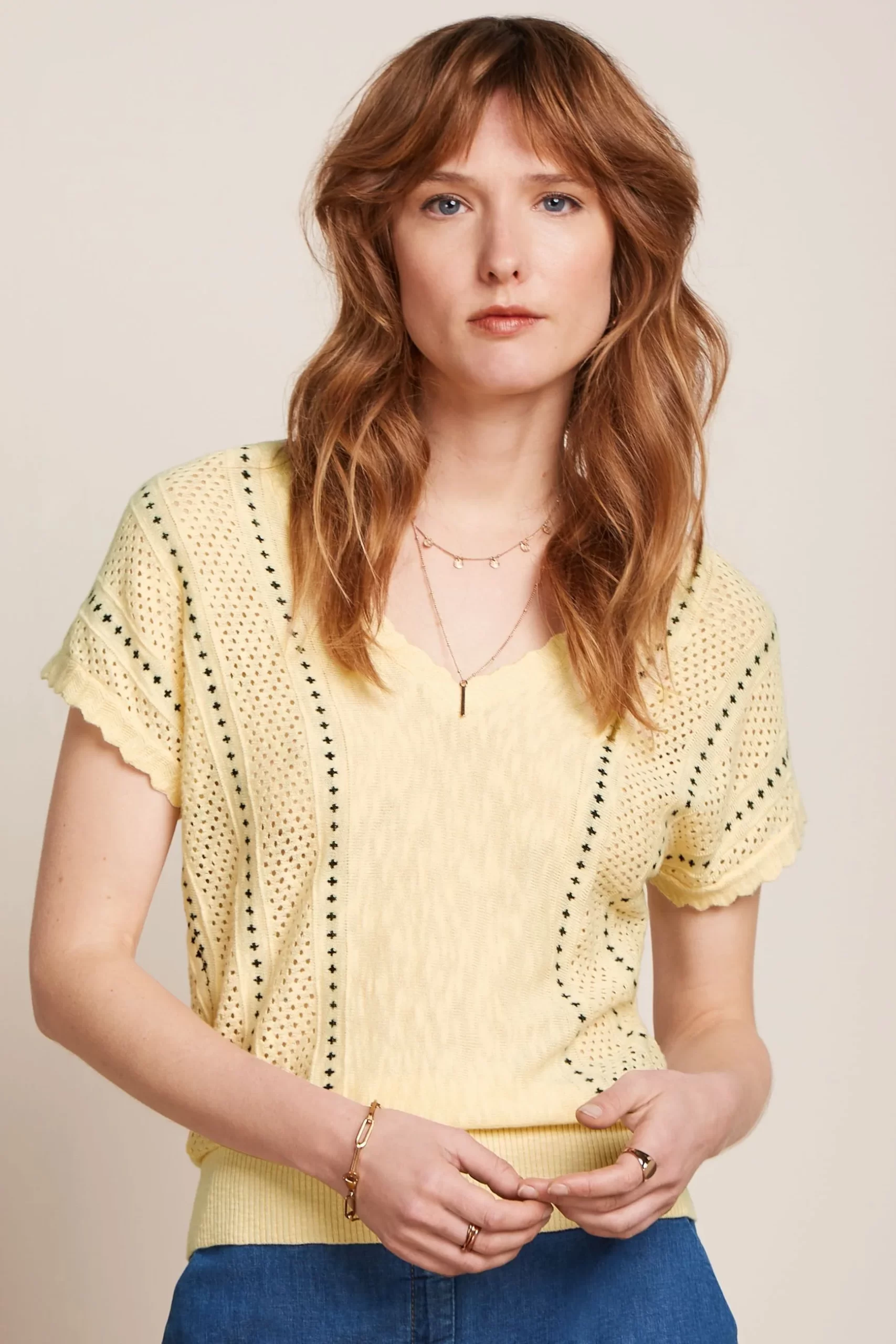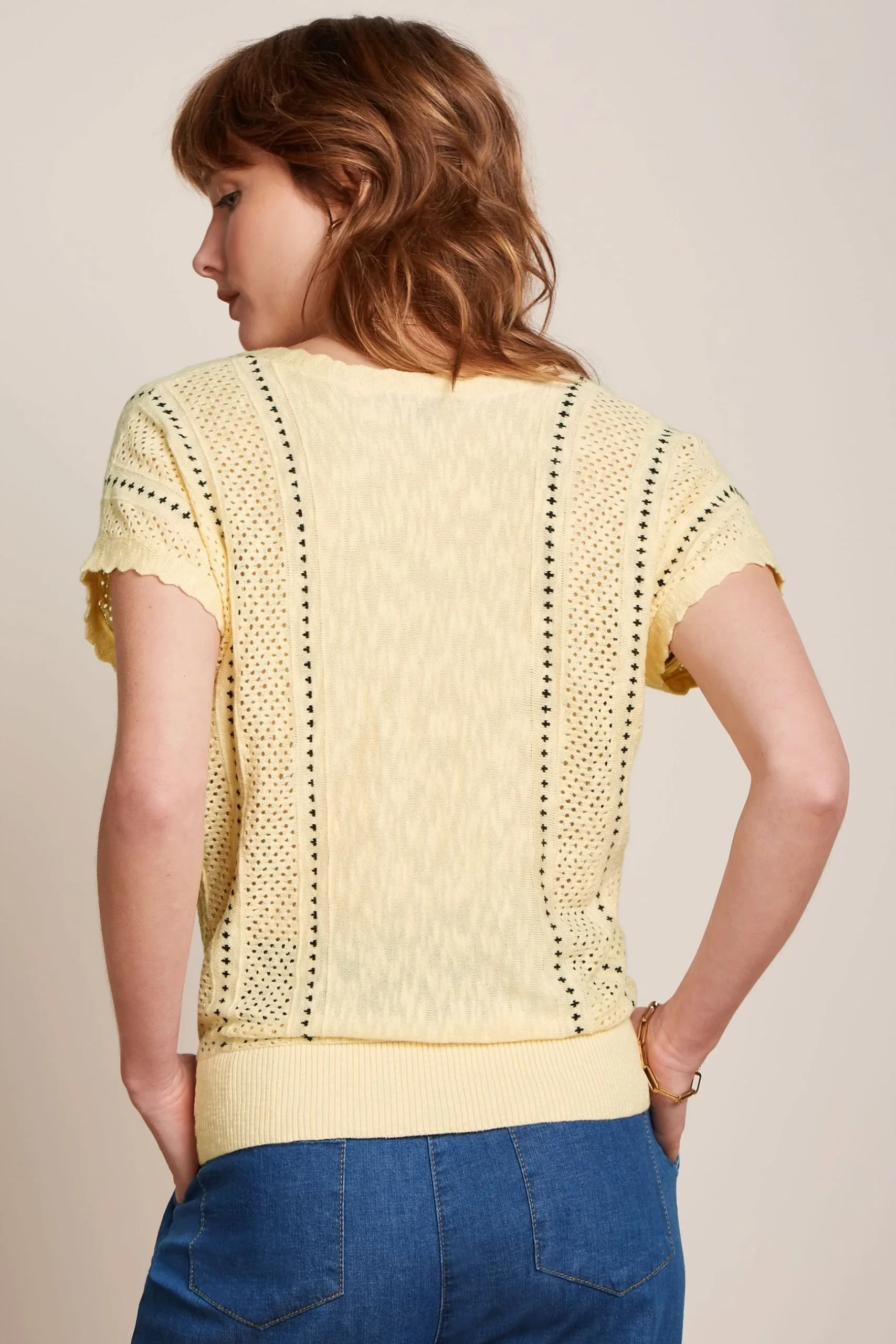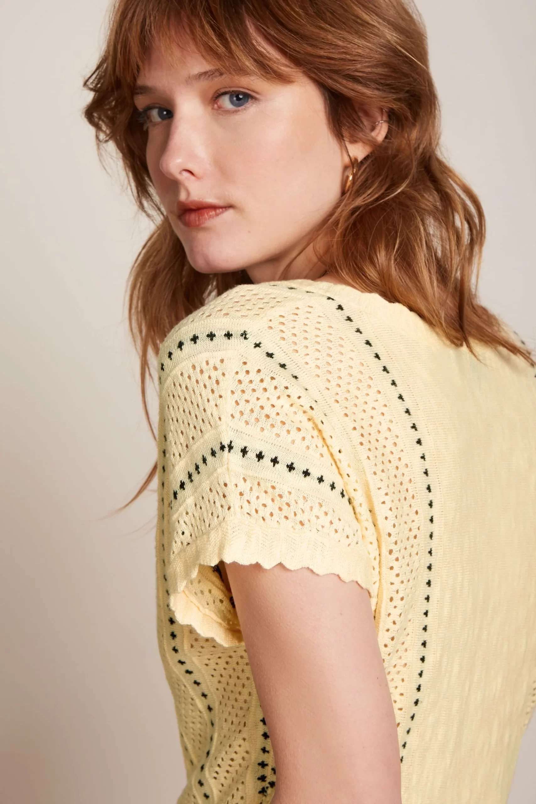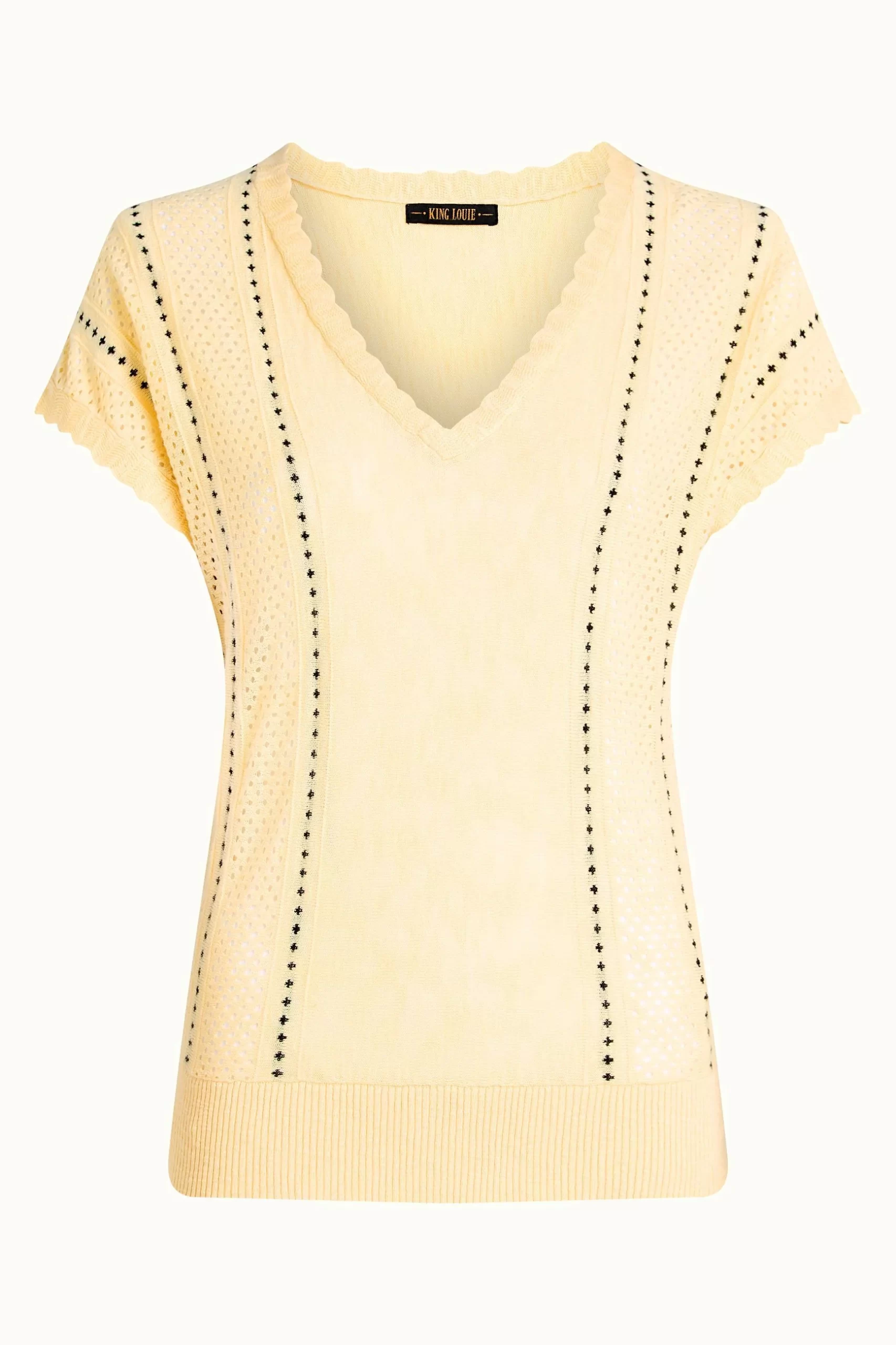 Step back in time with our enchanting vintage- style knit top, featuring a delicate pastel color palette and a classic design.