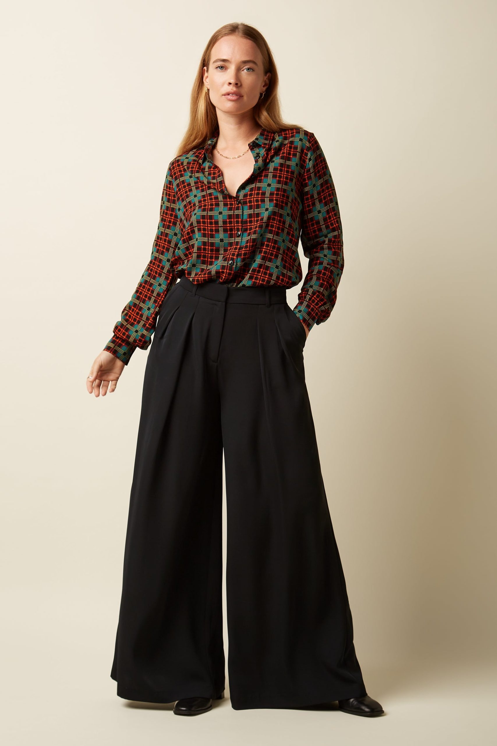 The Maisie Blouse Duna is crafted from woven, non-stretch viscose with a timeless checkered pattern. It features long sleeves, a classic collar, and a button closure, offering a stylish and comfortable addition to your wardrobe.