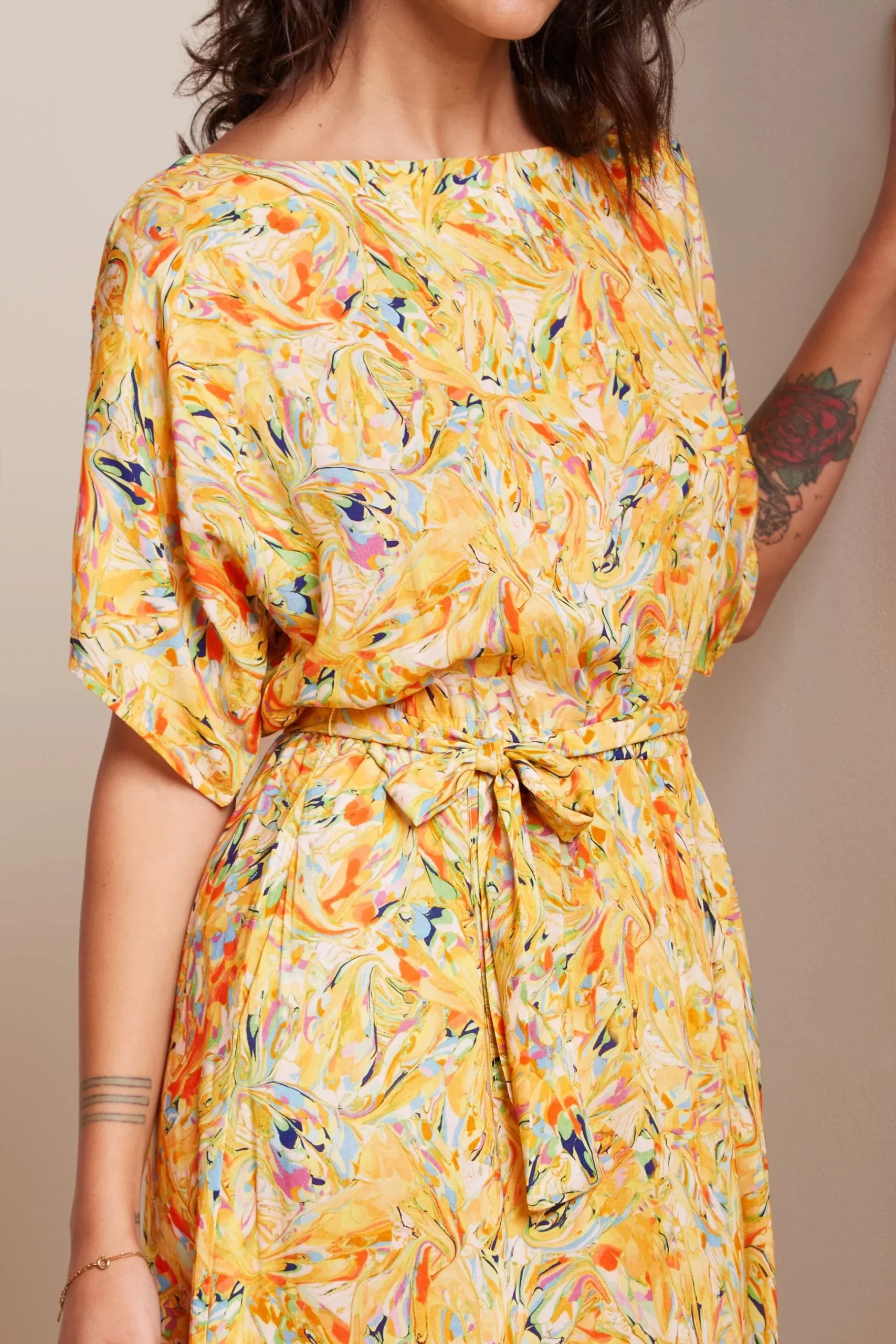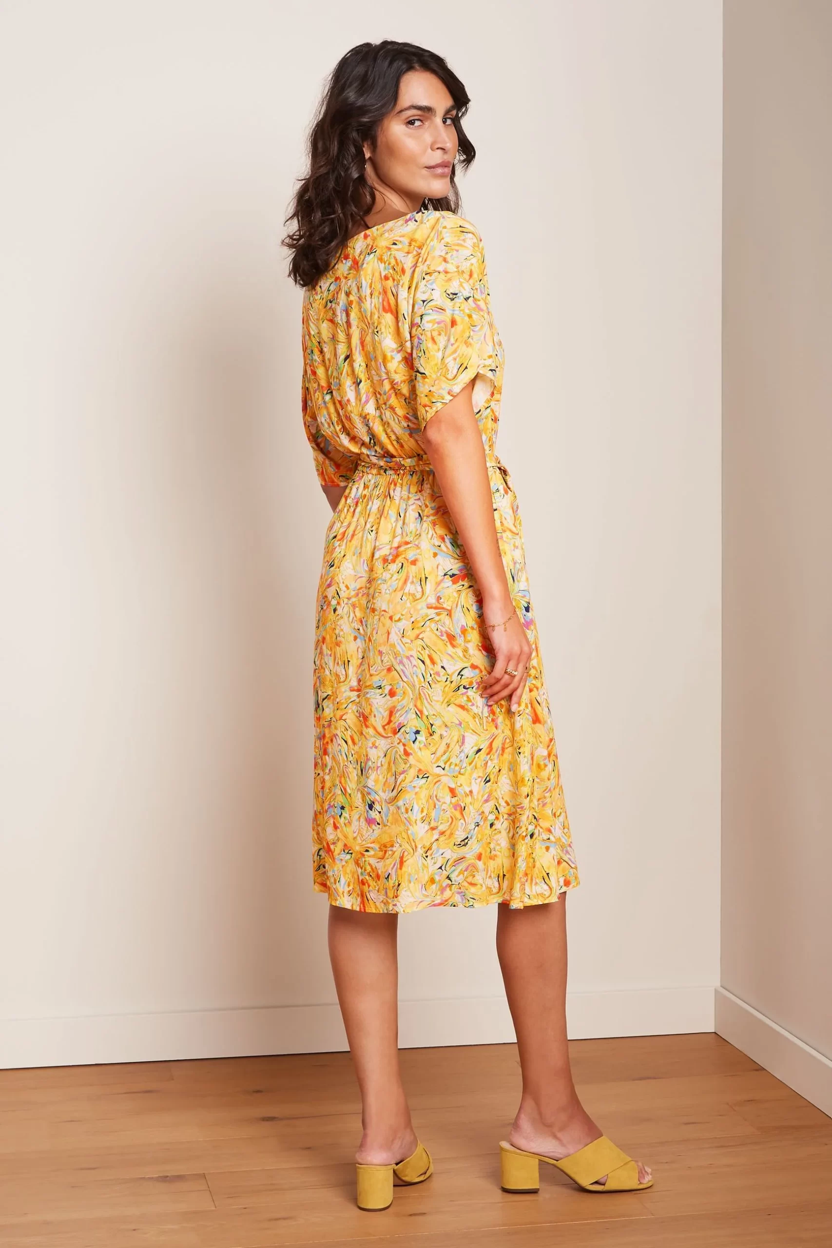 Flashback to the 80s with this chic dress in woven viscose option. With its just-below-the- knee length, it is perfect for those who love the comfort and style of a shorter hemline.