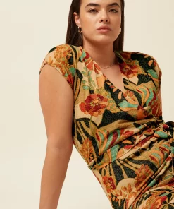 The Mary Jumpsuit Dazz features a flattering wrap-over design crafted from shimmering lurex jersey that adds a subtle sparkle to your look. Its stretchy fabric ensures comfortable movement, while the waistband accentuates your silhouette. With delicate cap sleeves, a feminine floral pattern, and a flattering V-neck, this jumpsuit combines elegance and ease for any occasion.