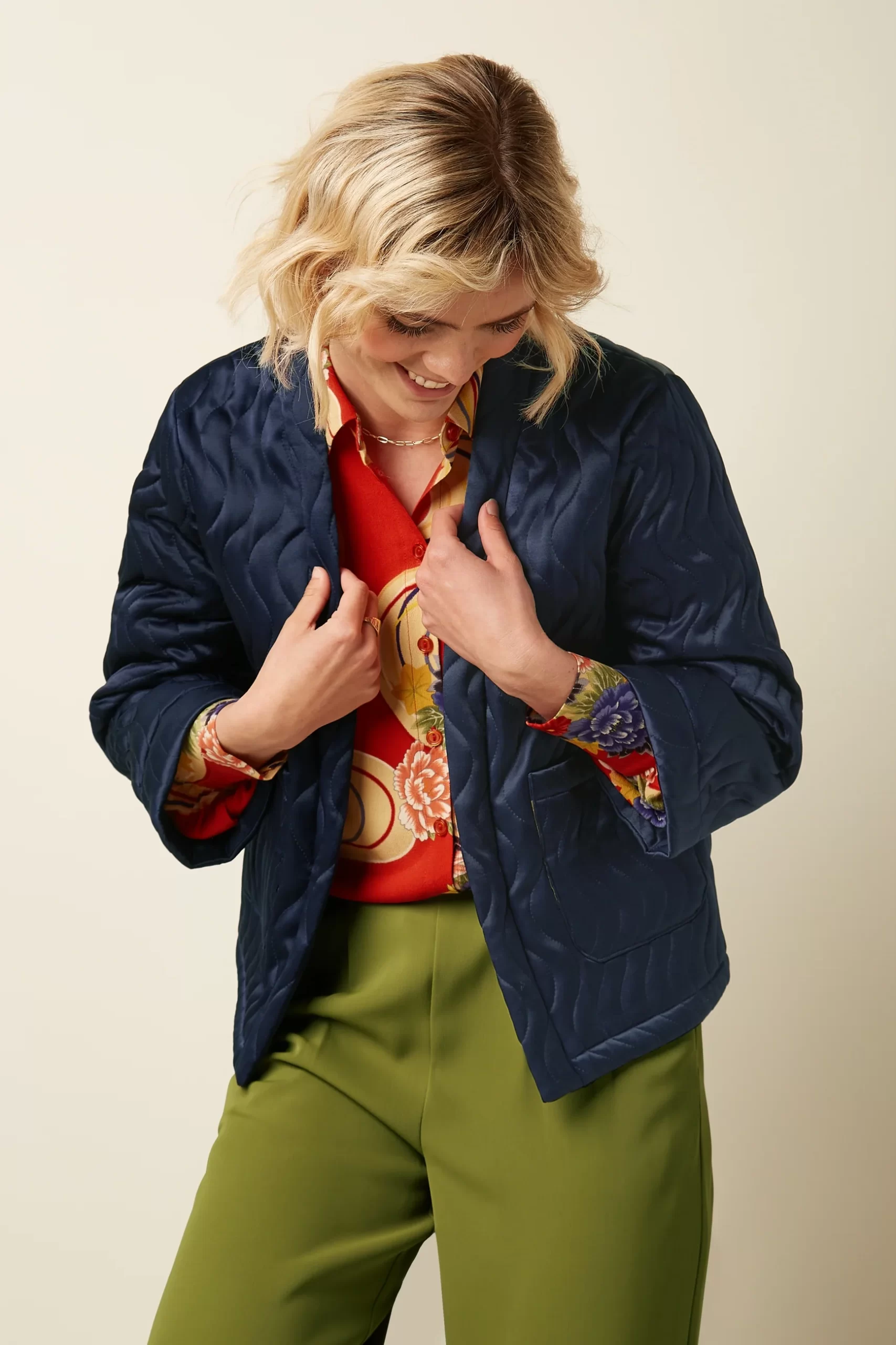 The Noor Jacket Star Satin combines a quilted design with patch pockets and long sleeves for a refined look. Lined and crafted from woven viscose, this jacket offers both comfort and elegance, perfect for sophisticated layering.