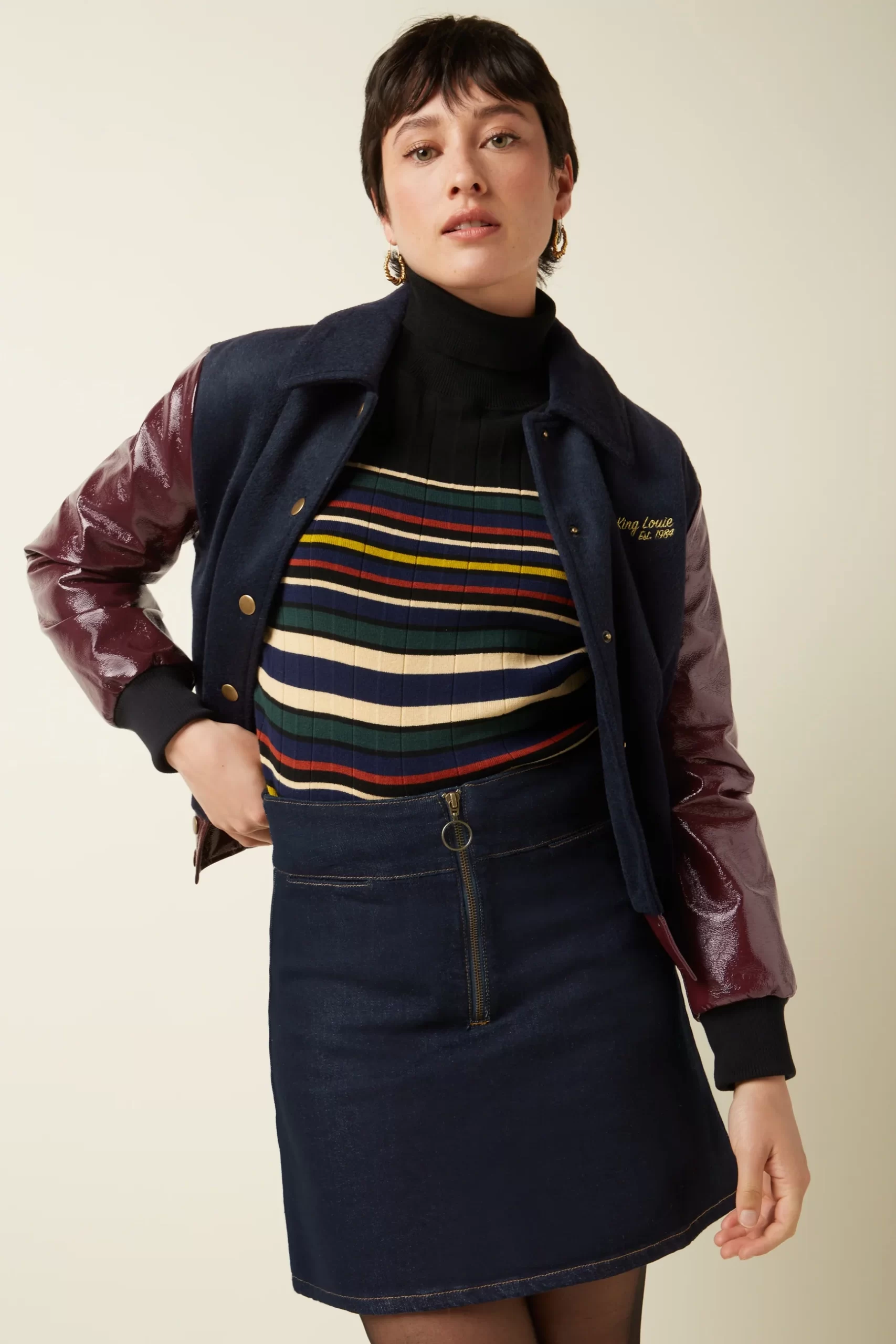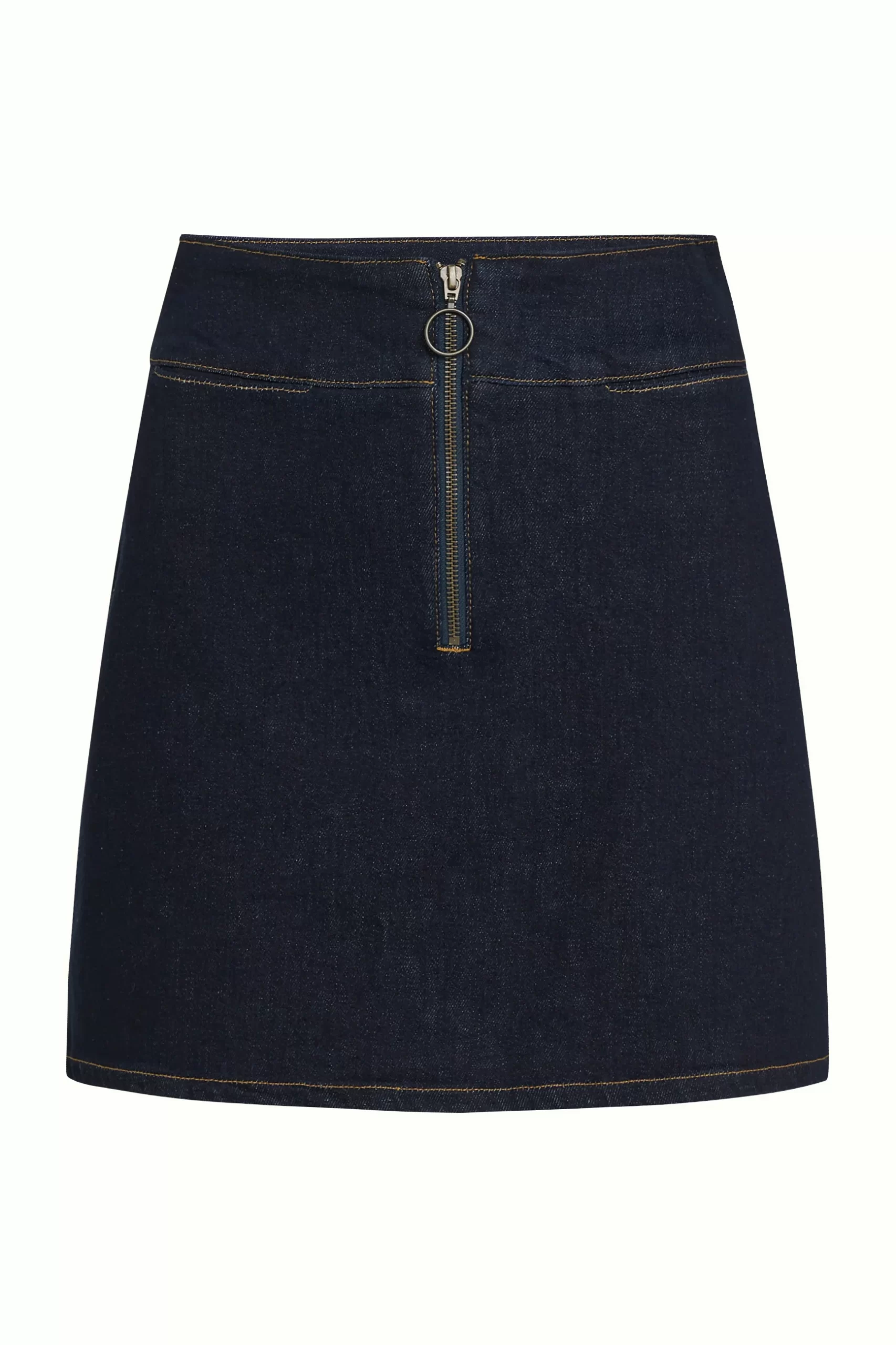 Embrace the spirit of fun, with this must-have denim mini skirt featuring front pockets and a zip closure.