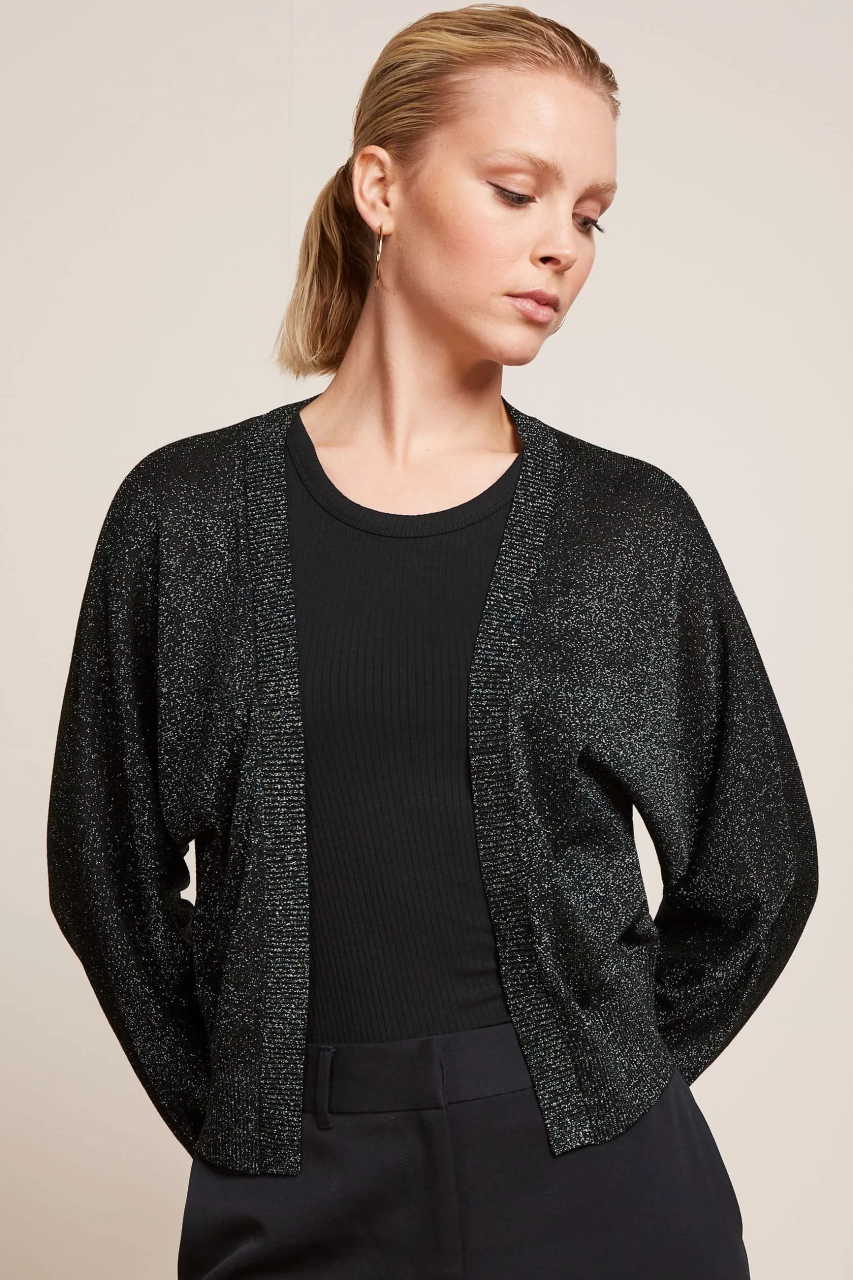 Introducing an updated version of our popular Valentina Cardi, crafted in a shorter design, specifically tailored to pair perfectly with the luxurious Spiro viscose lurex knit.