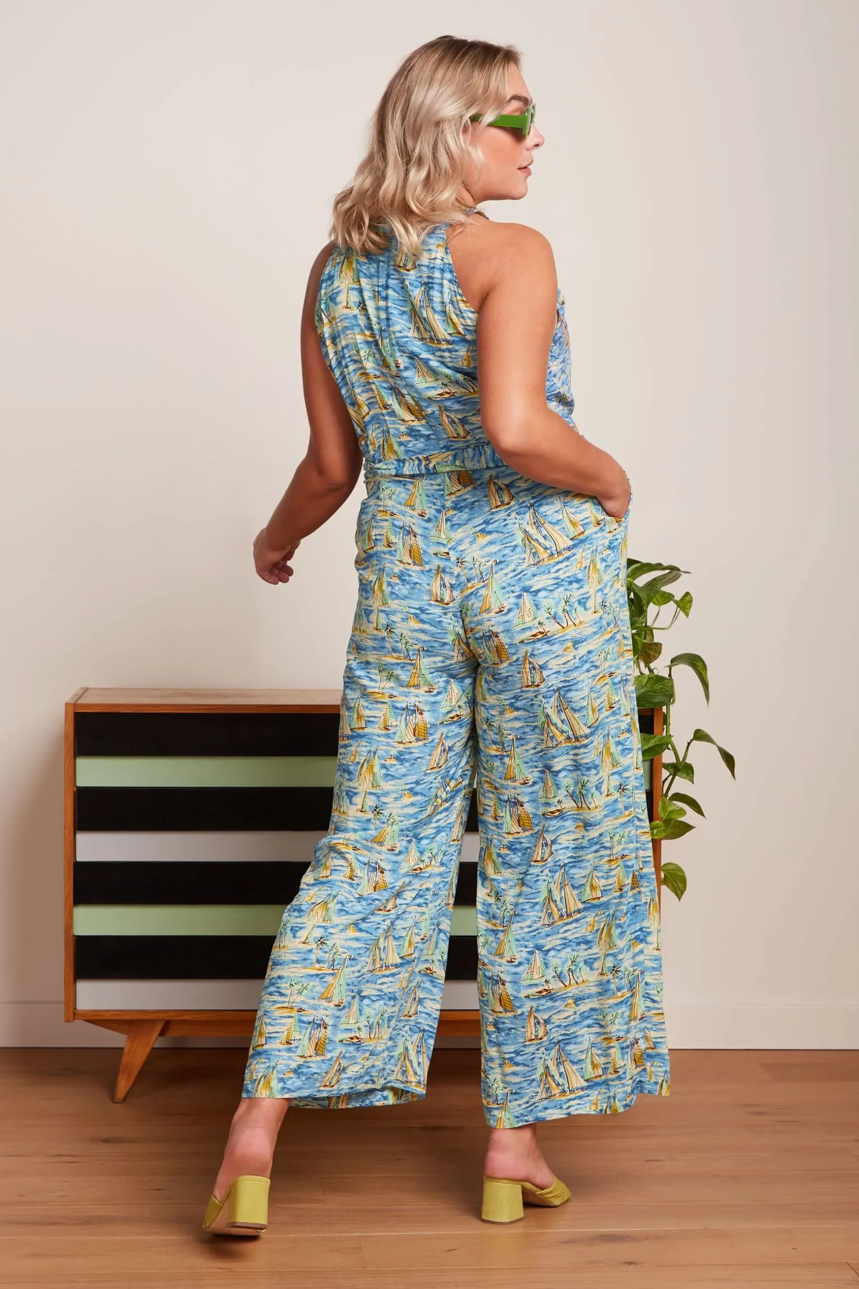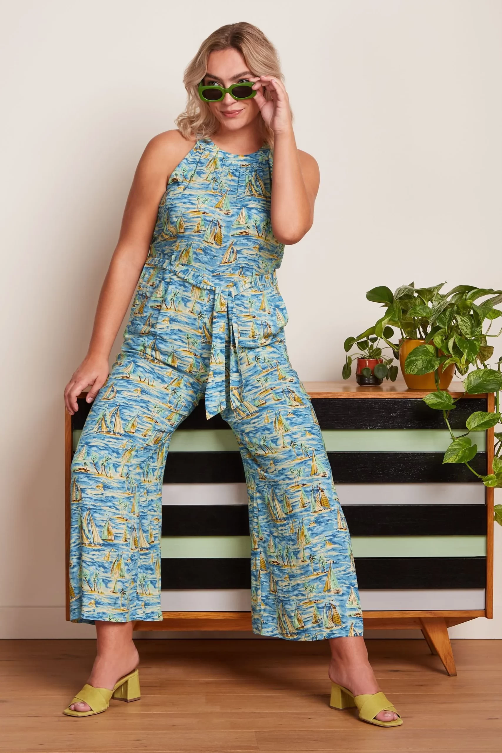The Virna dress turns into a versatile jumpsuit with a stylish halter neckline, practical side pockets, and a defining belt at the waist. In light viscose fabric